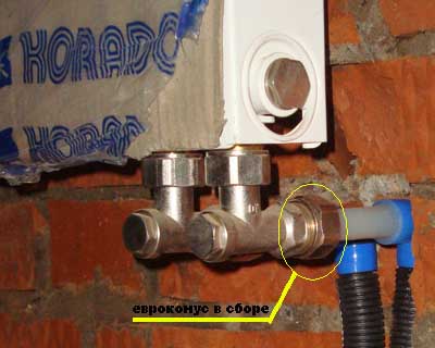 - В радиатор вкручивается ответная часть (конусы вверху справа на рисунке 3),