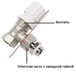 - На ответную часть прикручивается при помощи накидной гайки вентиль,